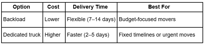 Backloading works particularly well for flexible movers who are not working around settlement deadlines.