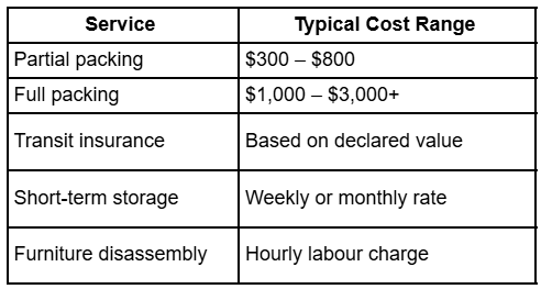 These estimates generally include transport, loading, unloading, and basic furniture protection. Services such as packing, storage, insurance, and priority delivery are usually priced separately.