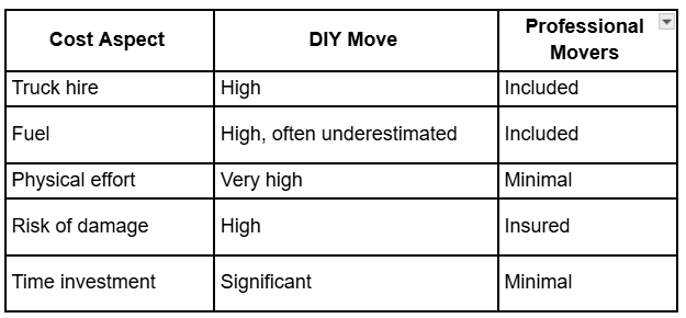 At first glance, DIY moving appears cheaper — but only until the full picture is considered.